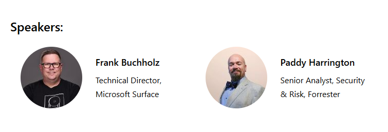 • We’ll also hear from Microsoft Technical Director Frank Buchholz, who will explain how Surface Intel® Core™ Ultra devices are purpose-built for business and help strengthen endpoint security both inside and outside of the office.